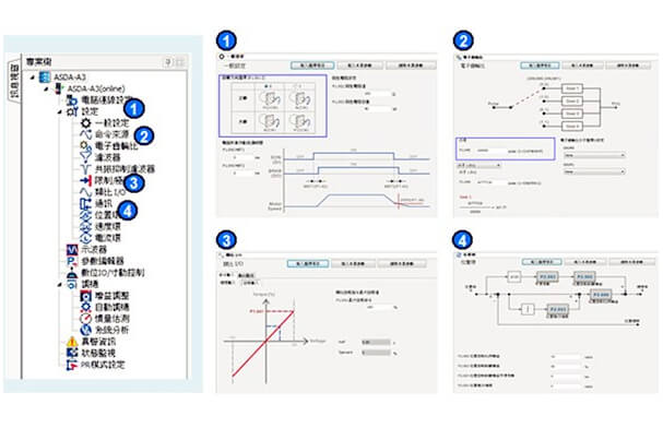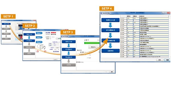 引導式與對話式的自動調機功能,只要循序簡單設定即完成伺服增益調整
