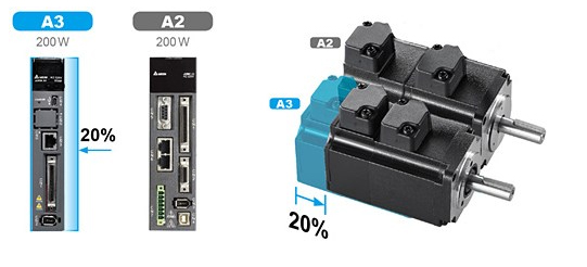 驅動器面寬與馬達長度縮小約 20% (與 A2 相比)