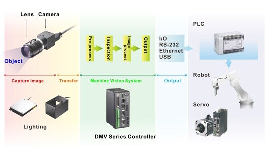 本系統(tǒng)主要是針對(duì)自動(dòng)化生產(chǎn)線中,產(chǎn)品質(zhì)量的瑕疵檢測(cè)、外觀尺寸測(cè)量、工件計(jì)數(shù)、識(shí)別確認(rèn)以及自動(dòng)化對(duì)位組裝等多項(xiàng)視覺(jué)檢測(cè)功能與需求而開(kāi)發(fā)出來(lái)的產(chǎn)品,其檢測(cè)功能包含有『面積檢測(cè)』、『邊緣位置、寬度、角度、計(jì)數(shù)』、『瑕疵及斑點(diǎn)檢測(cè)』、『圖形比對(duì)、輪廓比對(duì)』、『字符識(shí)別』、『坐標(biāo)、角度運(yùn)算』、『尋邊測(cè)量』、以及『自動(dòng)對(duì)位、坐標(biāo)搜尋』等;用戶可以通過(guò)DMV控制器內(nèi)部高速精準(zhǔn)的多任務(wù)運(yùn)算處理能力、人性化的操作界面以及多樣化的視覺(jué)檢測(cè)功能,來(lái)解決在生產(chǎn)線因?yàn)椴僮魅藛T疲勞或疏忽造成的誤判,或是人眼無(wú)法識(shí)別出產(chǎn)品的缺陷以及因?yàn)楦呔墚a(chǎn)品組裝不易等造成的各式各樣問(wèn)題,進(jìn)一步地全面提升生產(chǎn)線的產(chǎn)品質(zhì)量、降低客退件數(shù)、增加設(shè)備產(chǎn)能以及減少企業(yè)的人工成本。