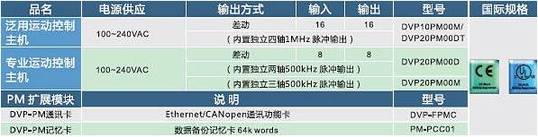 內建A/B相差動訊號輸出:2組 (DVP20PM00D) / 3組 (DVP20PM00M),差動輸出頻率500kHz