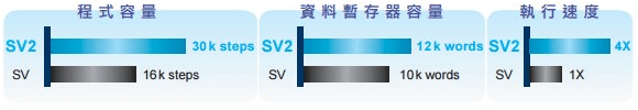 DVP-S系列高階主機,為因應更復雜的應用,程序及數據緩存器容量加大